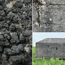 Nu komt het leuke…op deze bunker groeit Bunkerkorst. Een uiterst zeldzame korstmos. Met behulp van wat foto’s en m’n loepje kon ik de plek waar de Bunkerkorst groeit, vinden. I